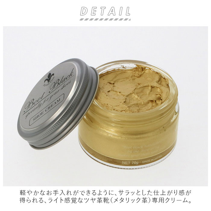 ・軽やかなお手入れができるように、サラッとした仕上がり感が得られるライト感覚なツヤ革靴(メタリック革)専用クリーム。